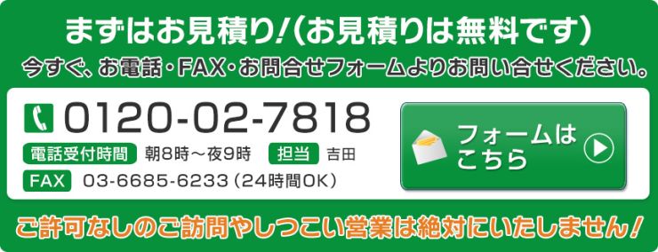 お客様ごとに価格やサービスが違う。。。残念ながら、この業界では当たり前のことです。「あの客では儲からなかったから、その分を次の客で取り返そう」という言葉が標語の様に繰り返されています。「取れるところからは出来るだけ取る」いわゆるぼったくり精神が、この業界には根ざしてしまっているのです。このことはお客様をだましているのと同じです。私たちはこの最悪の状況を軽蔑し、全てのお客様に対し、等しいサービスを等しい価格でご提供すべく邁進します。そのために、等しい条件でお見積もりし、値引きは一切いたしません。また、下請け工事も引き受けません。そして、この平等が保てなくなりそうなご依頼は、全てお断りします。